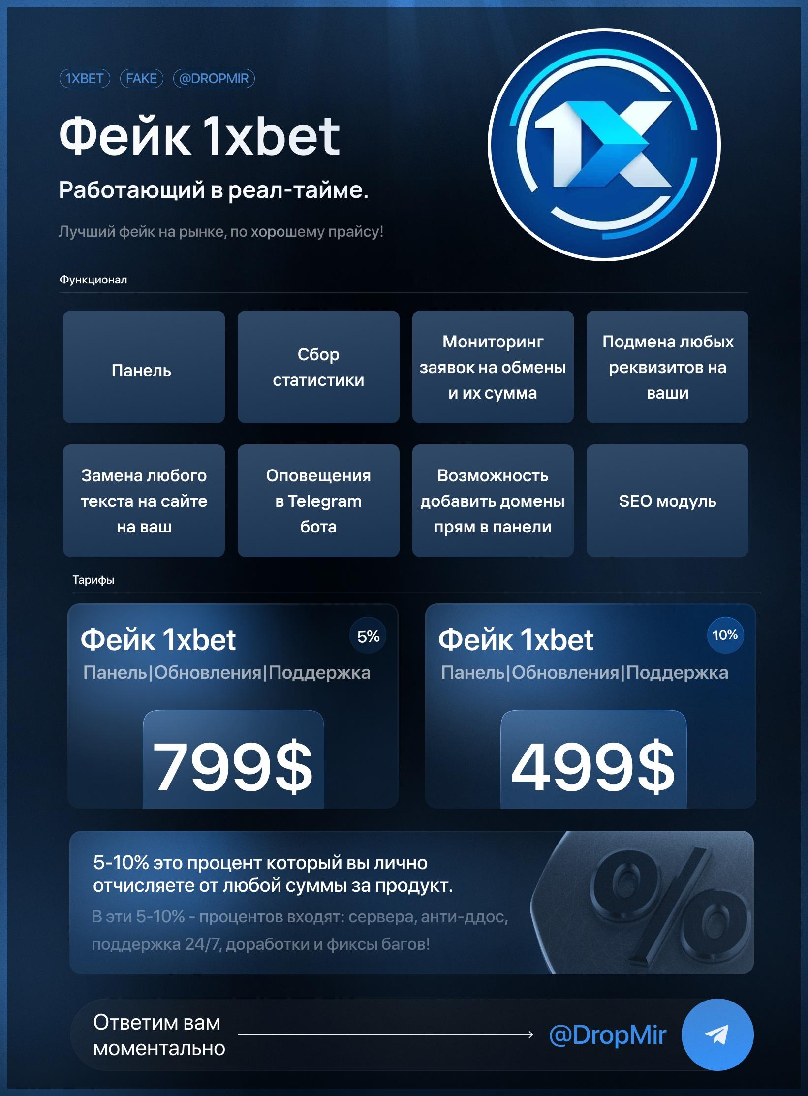 1. Фейк 1xbet + Панель | Обновления | Поддержка + 5% - 799$;