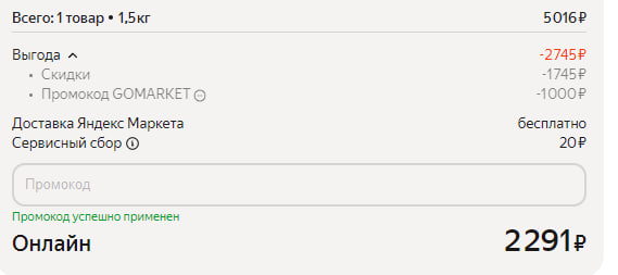 Промокод даст скидку в 1 000 ₽ для заказа от 2 000 ₽.